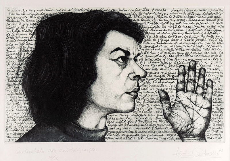 Alucina: me asalta el recuerdo entrañable del Autorretrato con autobiografía (1973), de la argentina Aída Carballo, en su yuxtaposición de líneas manuales y faciales y textuales para un mismo relato de vida. Cuyo desciframiento, sin embargo, es asimismo la afirmación de su incógnita.